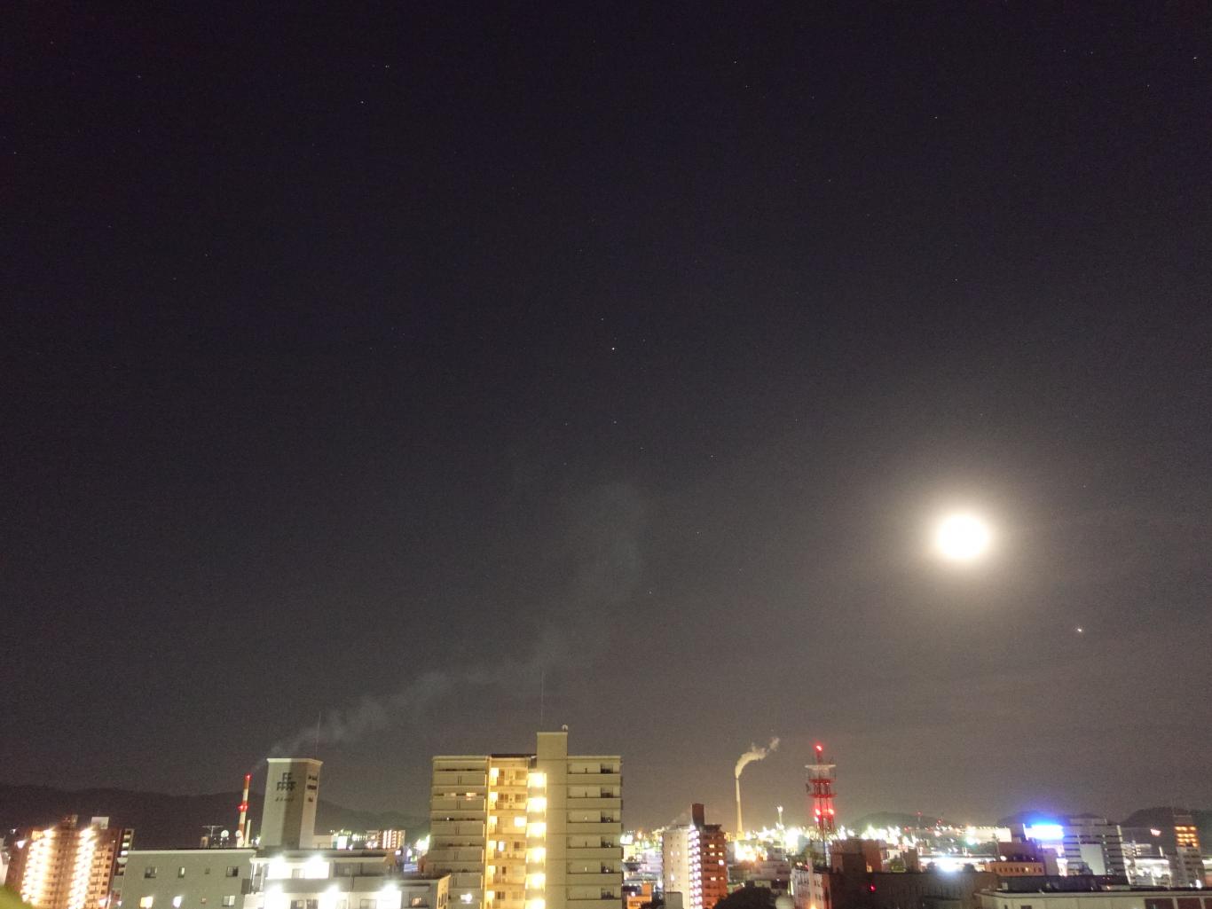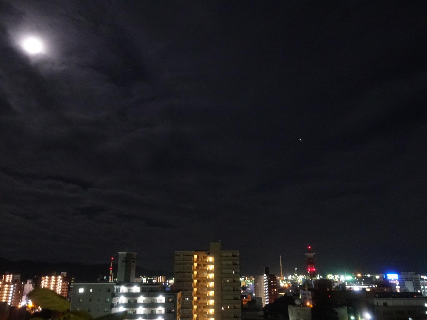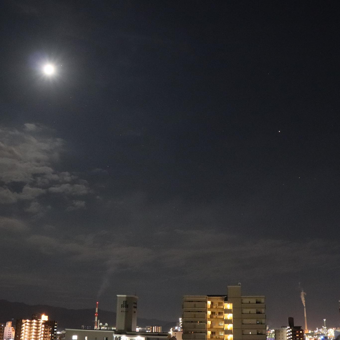 そして今夜(8/10)は、月が木星(右側)と土星(中央)の間、天の川のを渡っています😉(天の川は、月や夜景が明るくて観えませんね)