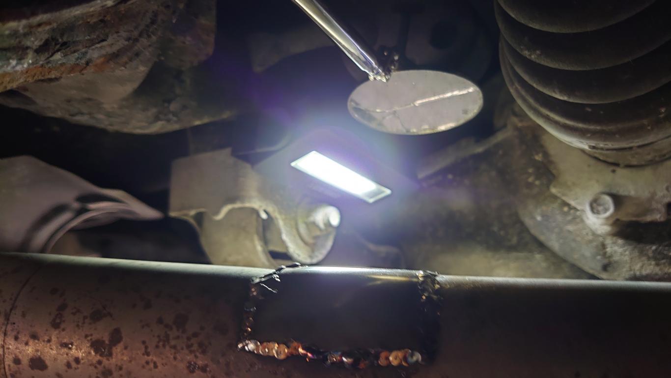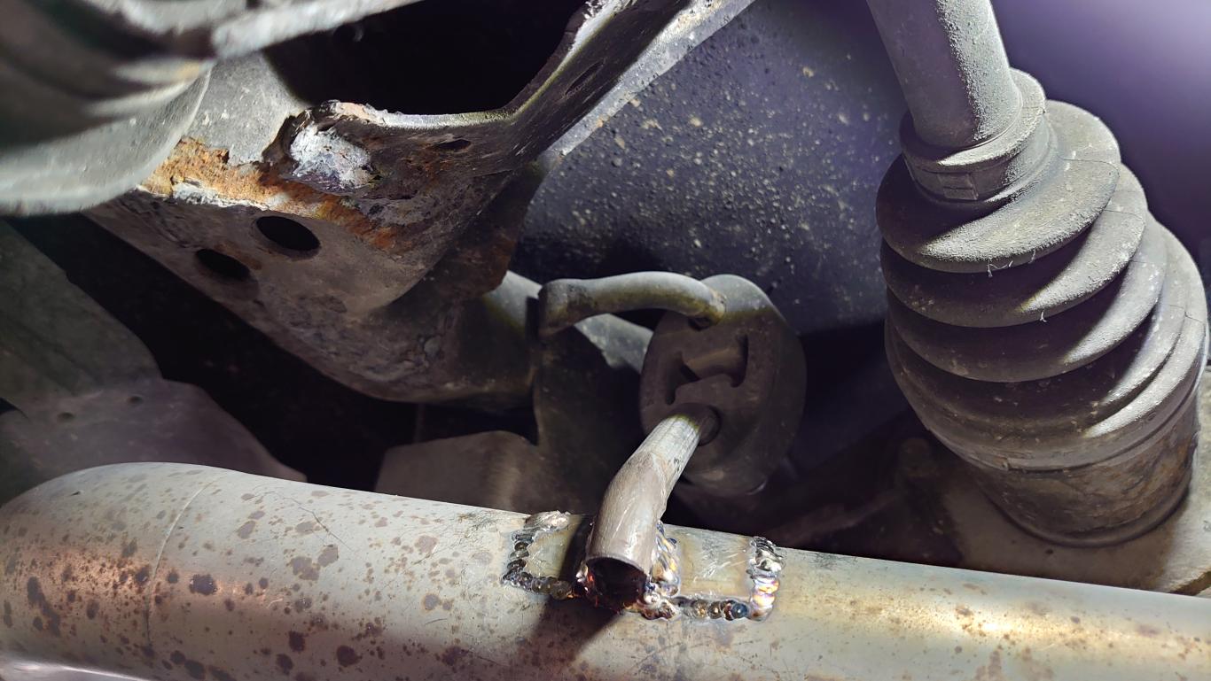とりあえず、このままと言うわけにはいかないので頑張ってパッチ当てとマフラーハンガー熔接してみました。