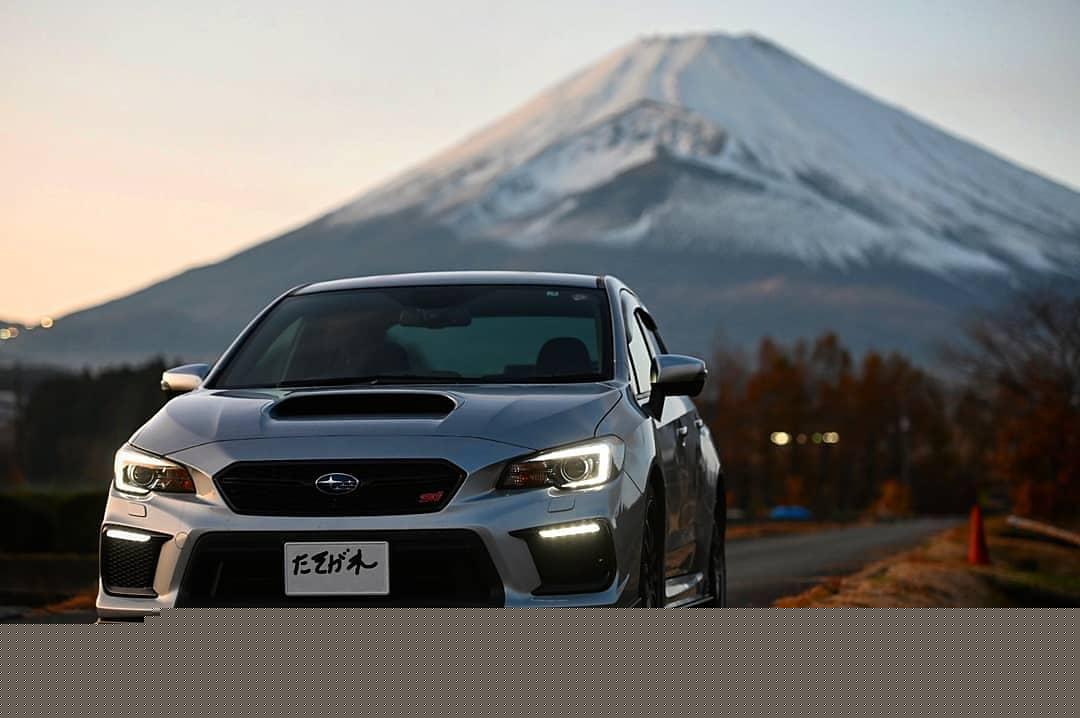 夕陽に染まった富士山とシルバーのVABが良い感じでした。