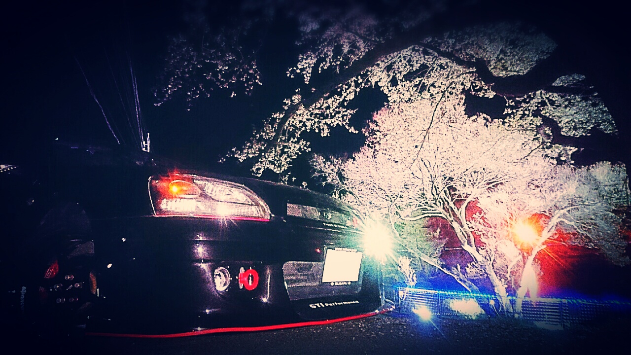地元の愛車BHレガシィと夜桜をコラボしてみました。