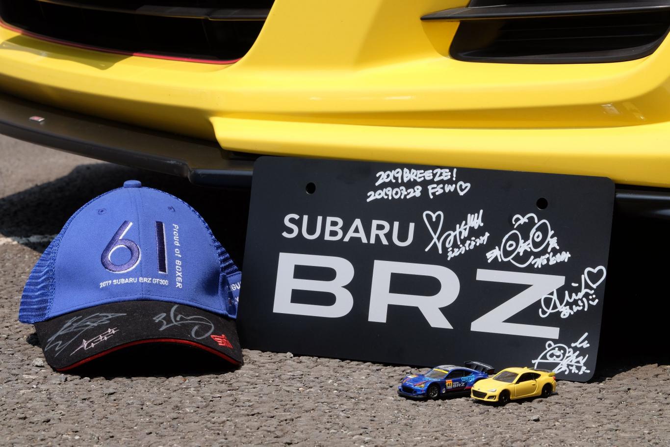 86style with BRZ 2019 のじゃんけん大会で幸運にも勝たせていただきました。BREEZEのサイン入りプレートとっても嬉しいです。記念にSuperGTの帽子とトミカと並べてみました。
